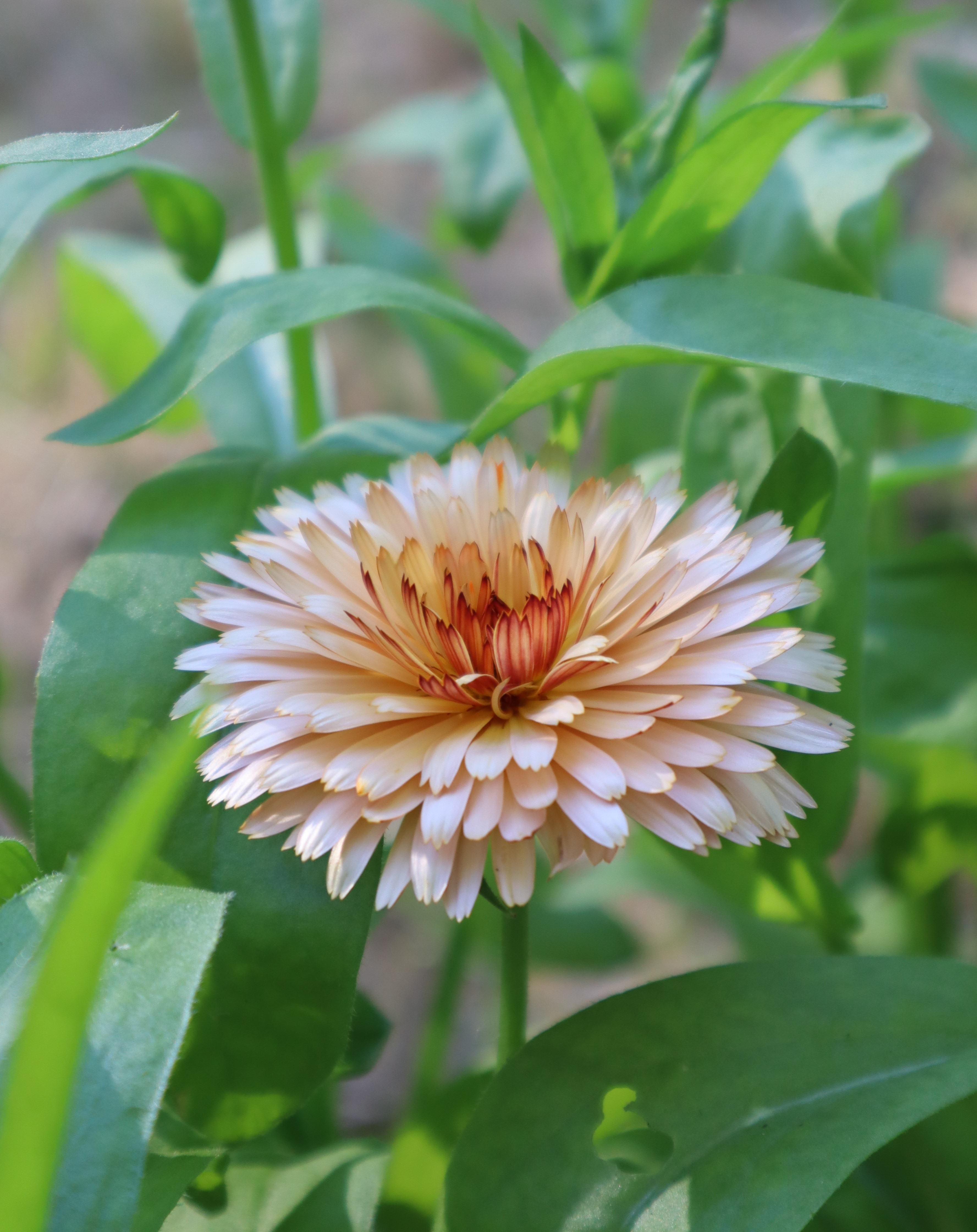 Kasvattamani lajike on nimeltään ’Orange Flash’. Se kasvaa n. 70-80 cm:n korkuiseksi ja kukkii kerrotuin pehmeäsävyisin kukin. Kukkien sävy vaihtelee vaaleankeltaisesta persikanväriseen.