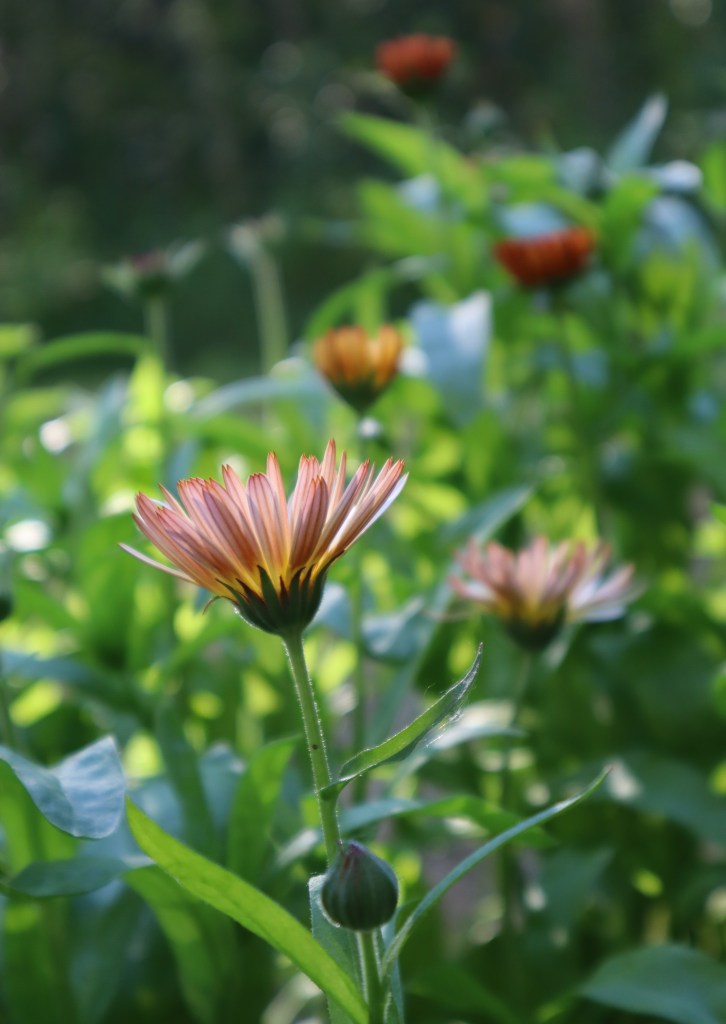 Kehäkukka eli tarhakehäkukka (Calendula officinalis) on varmaankin monelle niitä ensimmäisiä siemenestä kasvatettuja kukkia, mutta mä kylvin ensimmäiset kehäkukan siemenet vasta tänä vuonna. Jostain syystä se ei ole aiemmin listalleni päässyt. Ehkä olen vähän karttanut kirkkaankeltaista ja -oranssia, enkä tajunnut, että sitä on saatavana muissakin sävyissä. Muistin, että sitä on mainostettu helpoksi kasvatettavaksi ja sitä se tosiaankin oli. Kyllä kehäkukka on nyt se, mitä aloittelijoille ensimmäisenä suosittelisin. Tai niille, jotka eivät halua nähdä esikasvatuksen vaivaa. Suuri tulos pienellä vaivannäöllä!