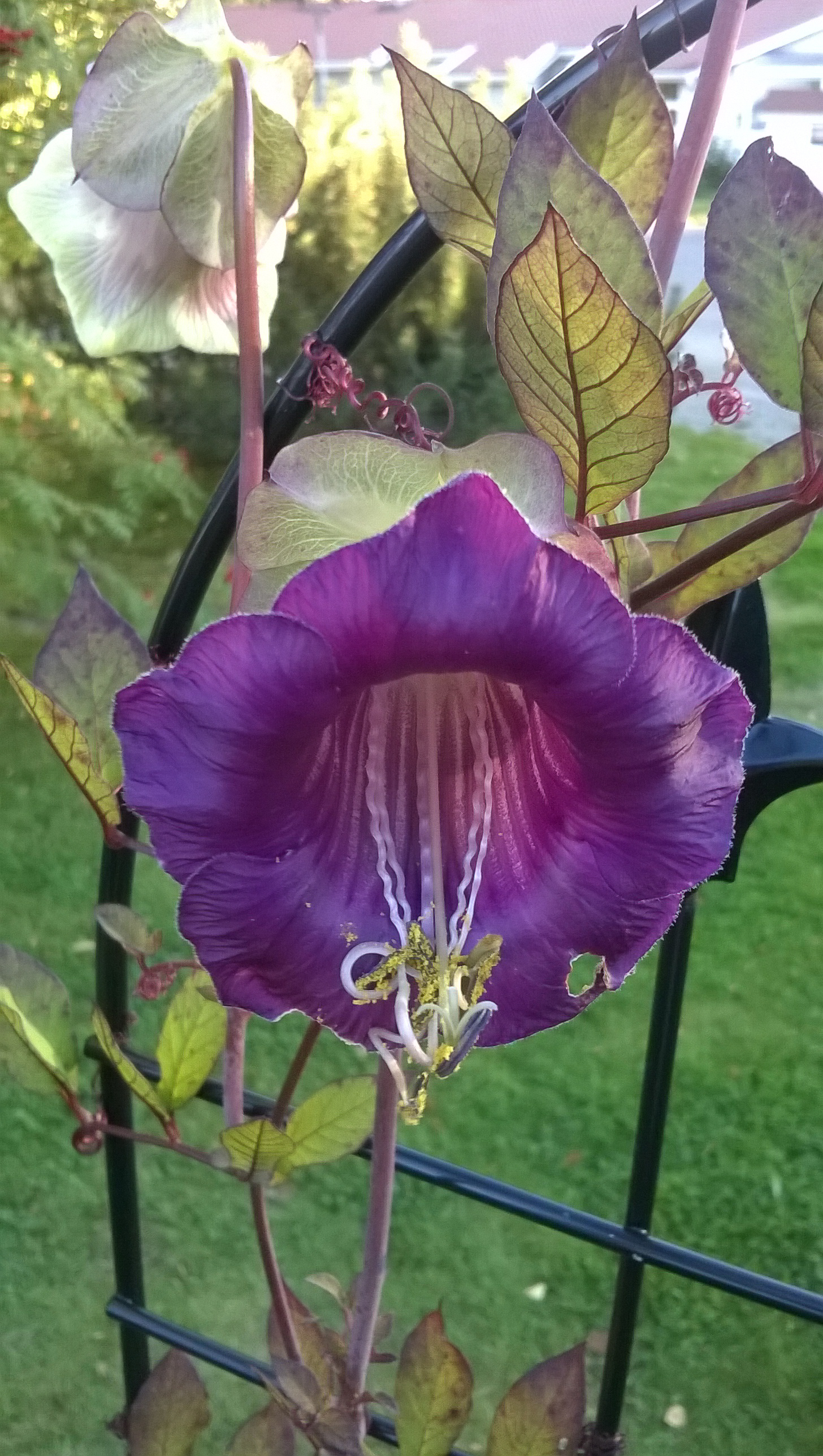 Olen kasvattanut ainoastaan violettikukkaista lajiketta ja sitä olen ajatellut ostaa myös tänä vuonna. Ainoa kysymysmerkki kelloköynnöksen osalta on sen kasvupaikka tässä pihassa. Edellisen kodin pihalla kasvatin sitä aidalla, missä sillä oli tilaa kiipeillä ja se toimi myös hyvänä näkösuojana. Täällä ei ole tällä hetkellä aitaa, eikä tarvetta näkösuojallekaan. Mulla on muutamia kehikoita, mutta niitä vasten ajattelin kasvattaa tuoksuherneet. Kelloköynnös on mulla kasvanut talon katolle asti ja nuo vanhat kehikot ovat niille hieman liian matalia. Varsia voi kyllä taivutella varovasti, jolloin matalampikin kehikko käy. Mutta, jotta ne pääsisivät rönsyilemään ihan vapaasti, tarvitsisi mun keksiä niille joku muu kasvupaikka. (Lisää juttua kelloköynnöksestä täällä.)