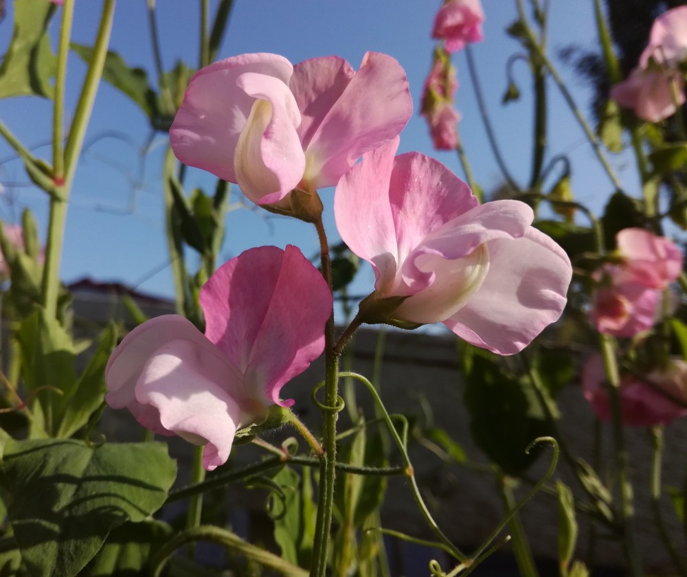 Kolmantena on mainittava tuoksuherne – taas kerran. Se on mun lempikesäkukkani, mutta kärkisijalle se ei päässyt siksi, että se tarvitsee tuen toisin kuin kehäkukka ja kesämalvikki.