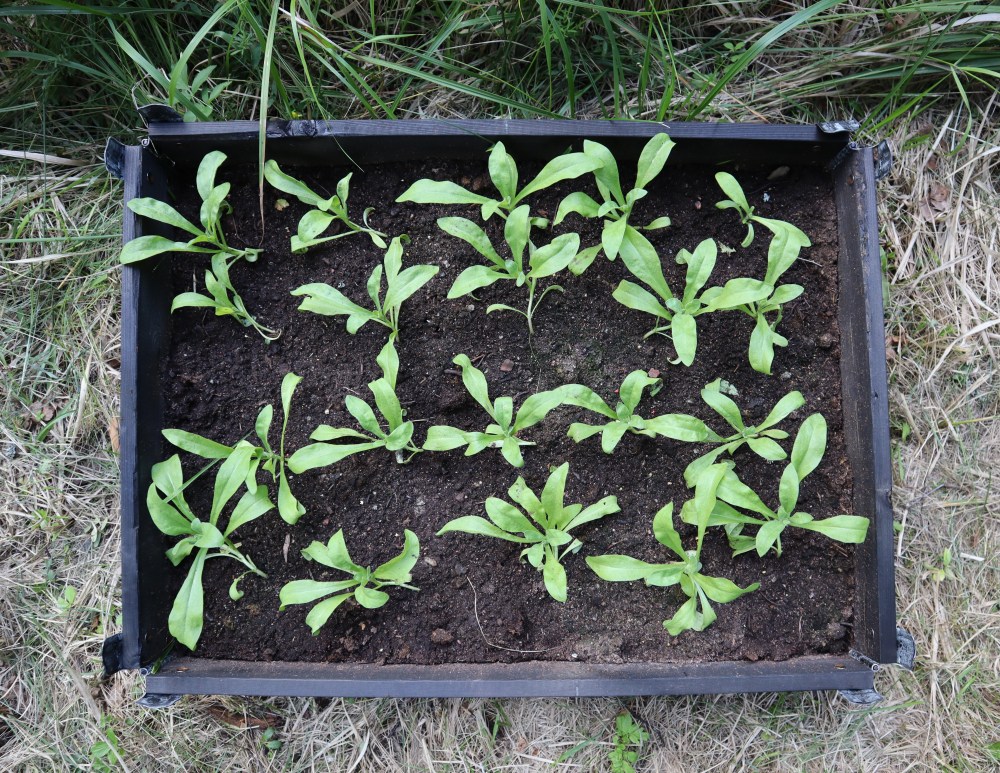 Kylvin siemenet viime vuonna muoviruukkuihin ja istutin taimet myöhemmin kasvatuskehikkoon. Siemenet itivät todella hyvin, eikä tainnut yksikään taimi kuukahtaa. Olisin kylvänyt siemenet suoraan kasvatuskehikkoon, mutta sain sen vasta myöhemmin kesällä.