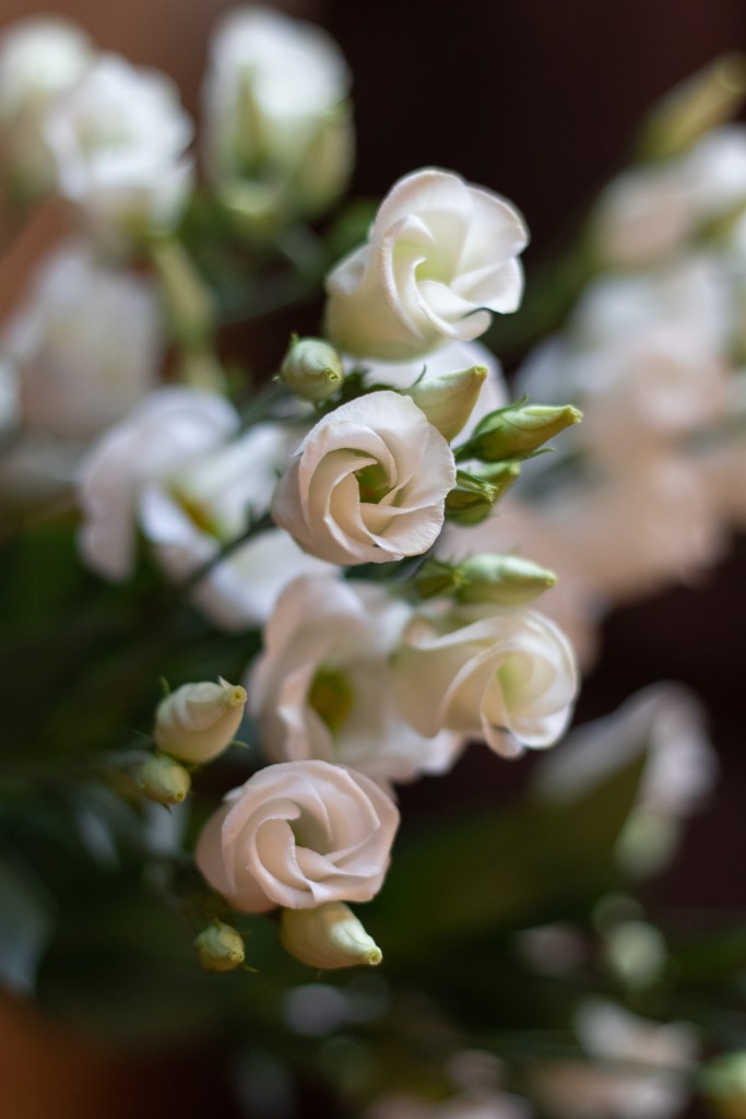 Eustomaa käytetään ymmärtääkseni usein kimpuissa täytekukkana, mutta se on upea myös pelkästään. Sen veistoksellisen kaunis kukka on mun mielestä ihan erityisen hieno. Vinkkinä tulevan kevään ja kesän morsiamille, kimppu pitkävartisia valkoisia eustomia olisi vähäeleisen hurmaava. Plussaa saavat multa myös siitä, että ovat tuoksuttomia niin kuin taas melkein kaikki nämä esittelemäni kukat. Neilikan kai pitäisi hyvin miedosti tuoksua, mutten itse kyllä haistanut mitään. Inkaliljassa on mun mielestä hyvin mieto tuoksu, mutta uskoisin ettei useimpia tuoksuherkkiäkään häiritse.