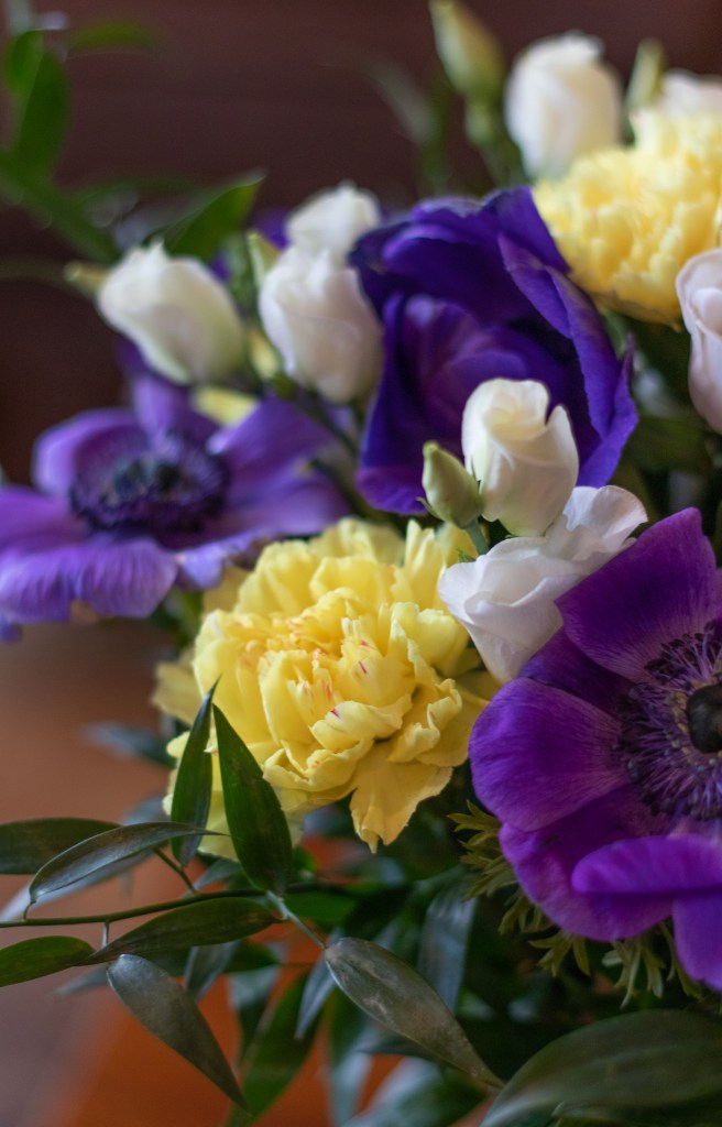 Pehmeän keltaisten neilikoiden sävy on aivan ihana! Lisäsin niitä kruunuvuokkojen joukkoon, mutta näyttäviä ovat maljakossa pelkästäänkin tai jonkun leikkovihreän, niin kuin ruskuksen kanssa.