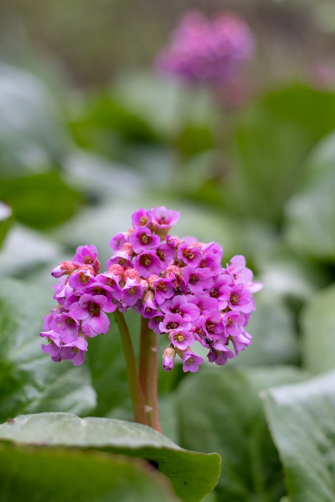 Upea vuorenkilpi kukkii ensimmäisten perennojen joukossa. Sen hempeän sävyiset kukinnot ovat näyttäviä ja tuovat ihanasti väriä alkukesään. Vuorenkilpirykelmiä löytyy pihalta kolme kappaletta ja ne saisivat mun puolesta levitä laajemmallekin. Vuorenkilpi tuntuu herättävän monissa voimakkaita tunteita ja olen huomannut sen usein päätyvän puutarhaharrastajien inhokkilistalle. Mä löydän siitä vain pelkkiä hyviä puolia! Kauniiden kukintojen lisäksi sen suuret lehdet pysyvät vihreinä läpi vuoden. Siinä ei kauaa aikaa alkukeväällä mene, kun ne toipuvat painavammankin lumikuorman alta.
