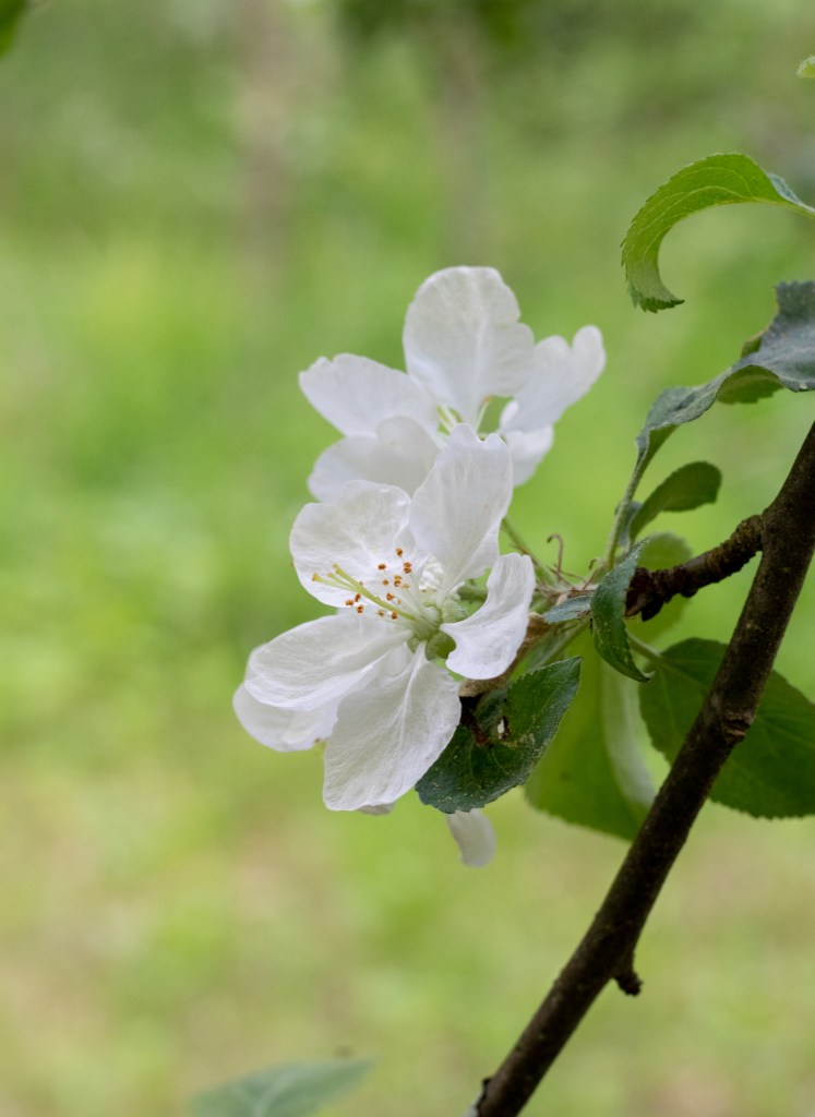 Se harmillinen puoli kesäkuun alun helteissä on, että kukinta-ajat jäävät todella lyhyiksi. Esimerkiksi muutenkin pikaisesti kukkiva omenapuu loisti valkoisena vain pari päivää. Ehdin sentään juuri ja juuri kamerani kanssa paikalle toissailtana ja löysin vielä pari kaunista kukintoa kuvattavaksi.