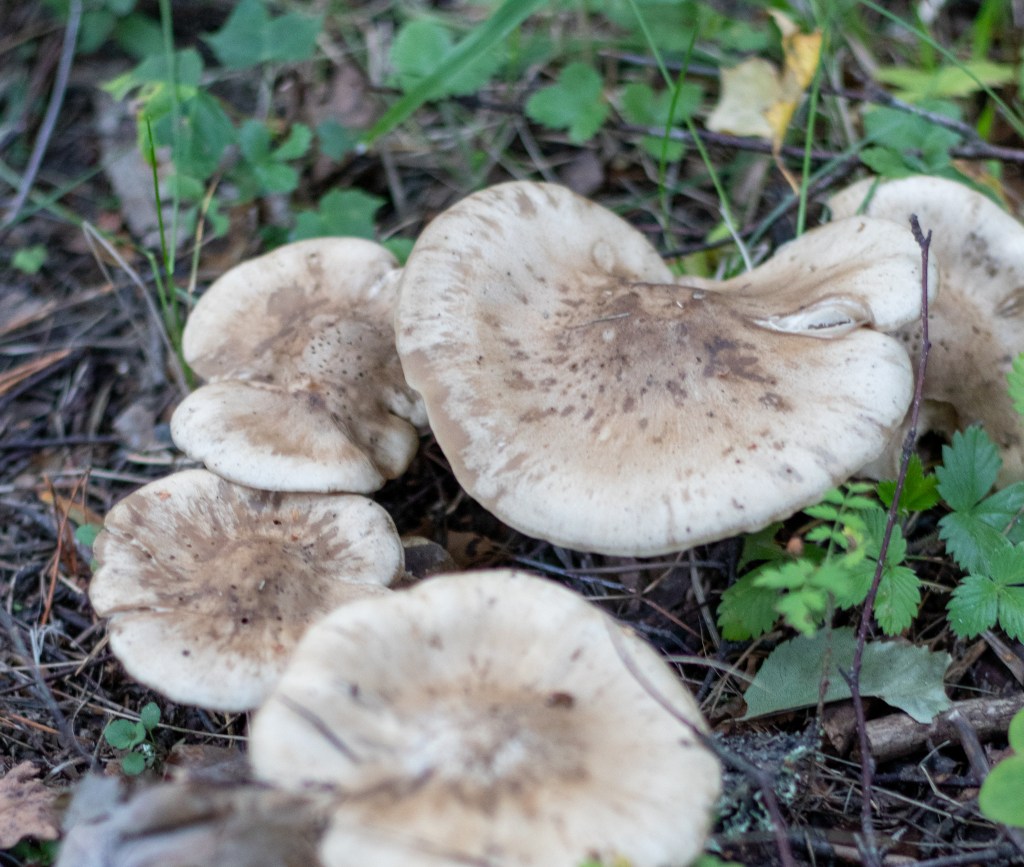 Löysin myös väljemmin kasvavia harmaalakkisempia sieniä, joita epäilen harmaarouskuiksi. Tai sitten ovat samoja rouskuja kaikki.