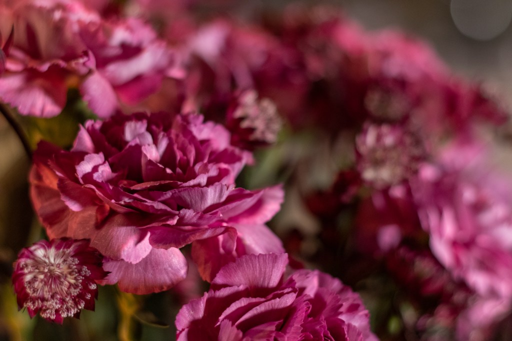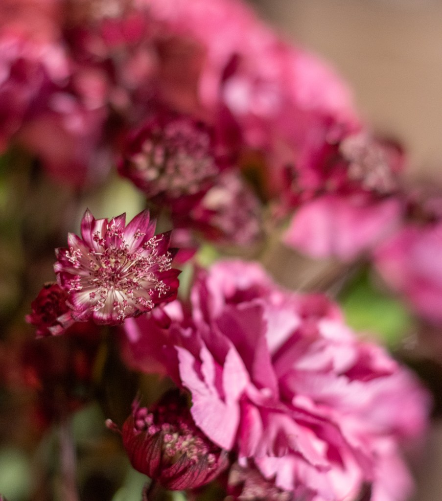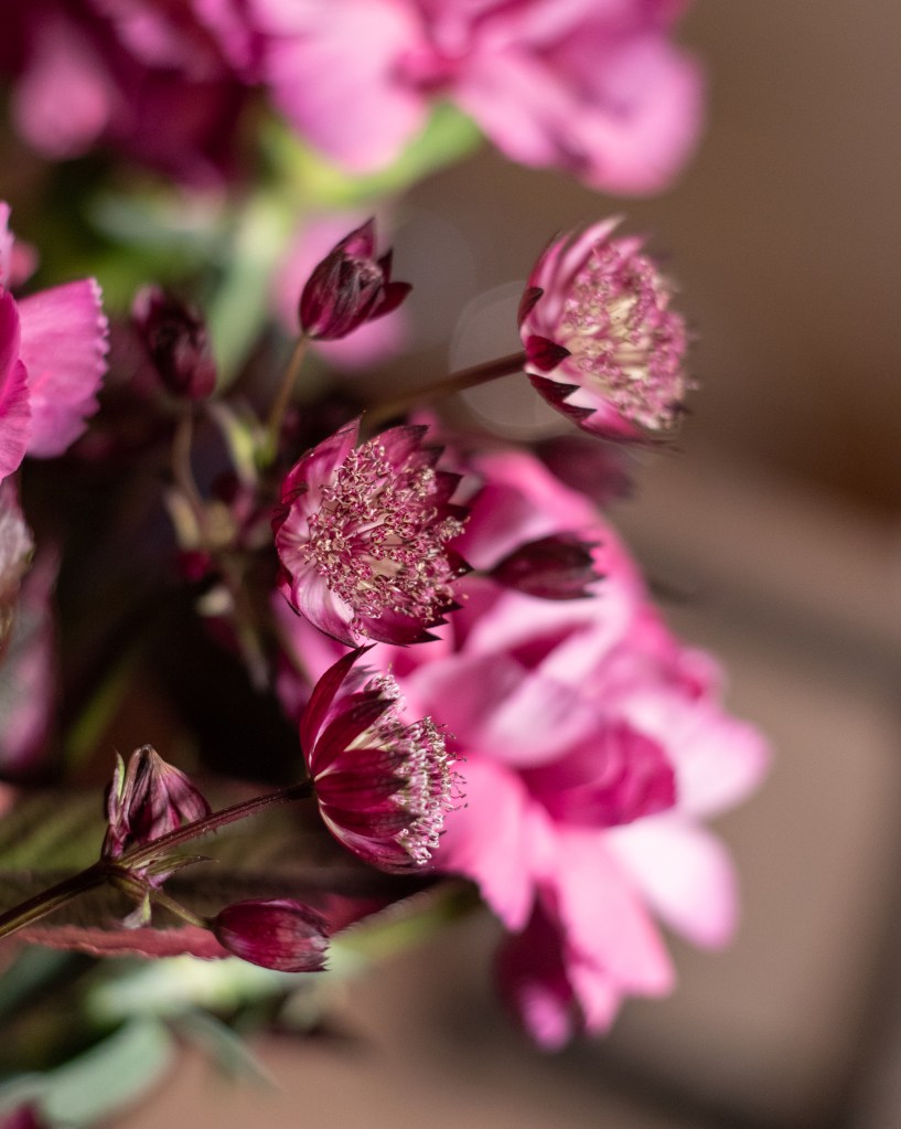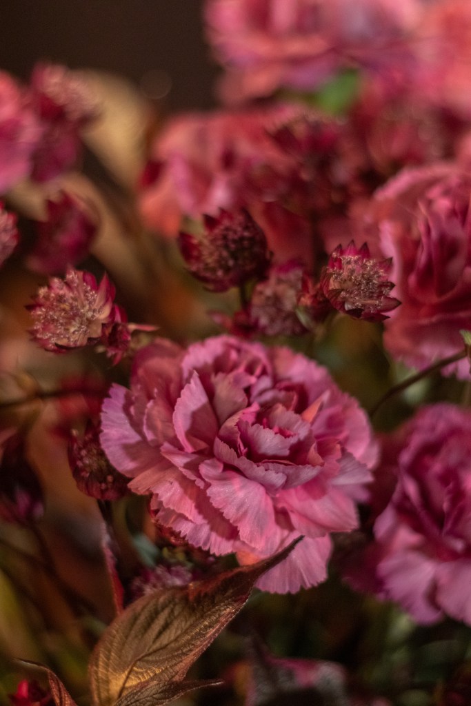 Nyt kun puut ovat pudottaneet lehtensä ja harmaat päivät ovat seuranneet toisiaan, oli ihanaa saada kotiin syksyn sävyjä leikkokukkien muodossa. Loka-marraskuussa suosin violetteja, viininpunaisia ja roosan sävyjä oranssien ja keltaisten sijaan. Ne houkuttelevat ruskan räväkkyyden jälkeen.