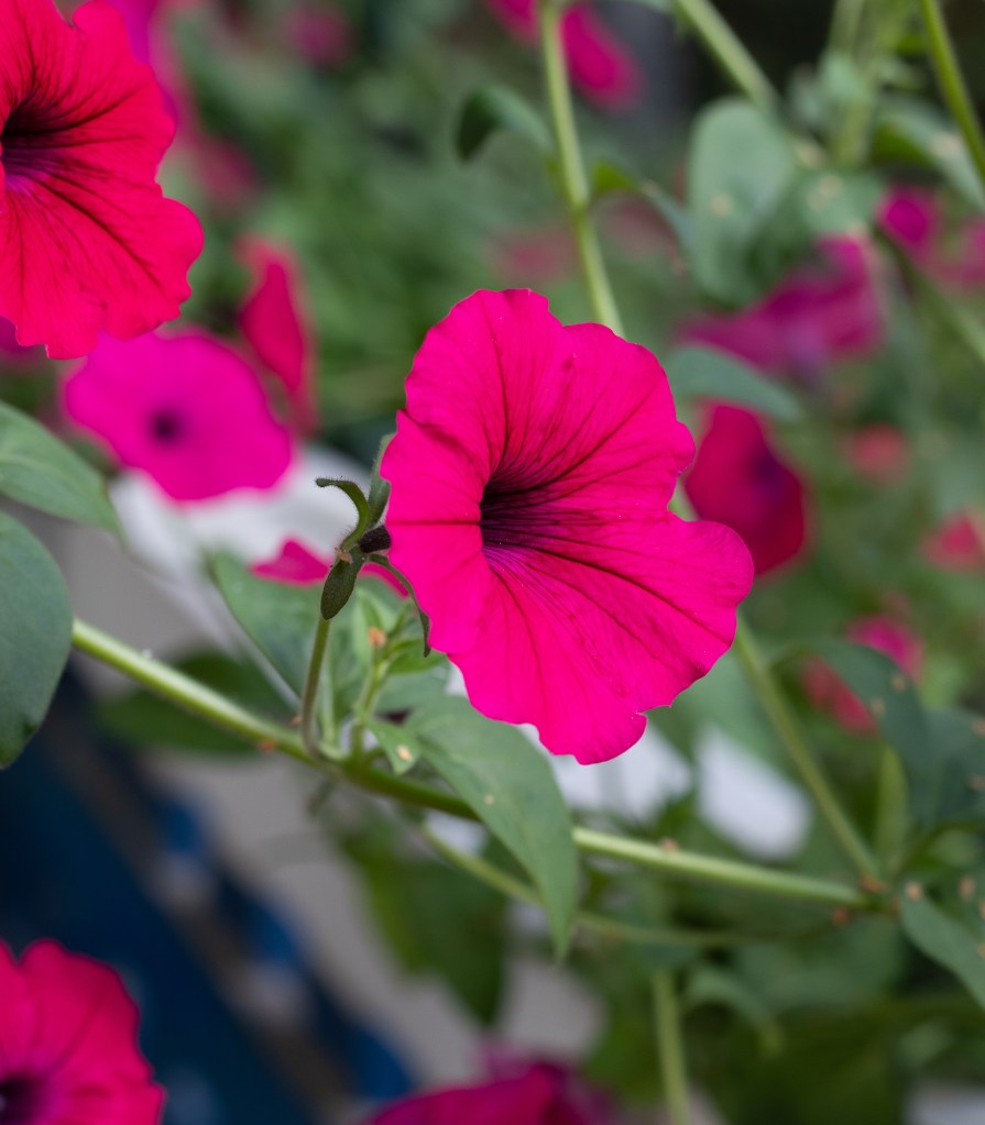 Mä istutan parvekkeelle aina vain yhtä lajiketta, jotta näky on mahdollisimman yhtenäinen ja vaikuttava. Ja koska kukat ovat korkealla, pitää niiden erottua hyvin ja nämä petuniat todellakin erottuvat! Luonnossa niiden väri on vieläkin upeampi.
