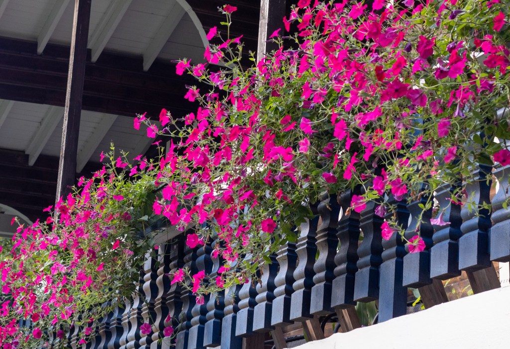 Istutin jokaiseen kahdeksaan parvekelaatikkkoon kaksi tainta ja ne valtasivat tilan nopeasti. Ja rönsyilevät joka suuntaan! En latvonut taimia ollenkaan, kun tiesin entuudestaan, ettei se ole välttämätöntä. Pitkiä rönsyjä voisi tietysti leikata, mutta mä nimenomaan haluan parvekkeelle kunnon rönsyilyä. Kiva, että kukkia on reilusti parvekkeen puolellakin, niin niitä saa sielläkin ihailla ja näkyvät hyvin ikkunoista myös sisälle.