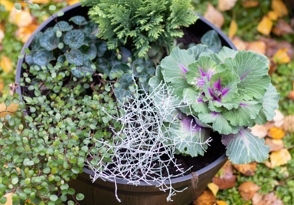 Istutin aiemmin tänä syksynä kahteen ruukkuun monenlaisia syyskasveja (juttu täällä) ja annoin ne ystävälle tupaantuliaislahjaksi. Itsellenikin jäi juuri sopiva määrä kasveja täyttämään uudet ulkoruukkuni.