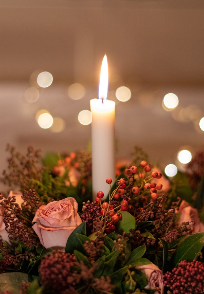 Todella kaunis kukka-asetelma ja koko pöytä valoketjuineen ja kynttilöineen näyttää kauniilta. Aivan ihana tunnelma! Mukavaa vuotta 2023!