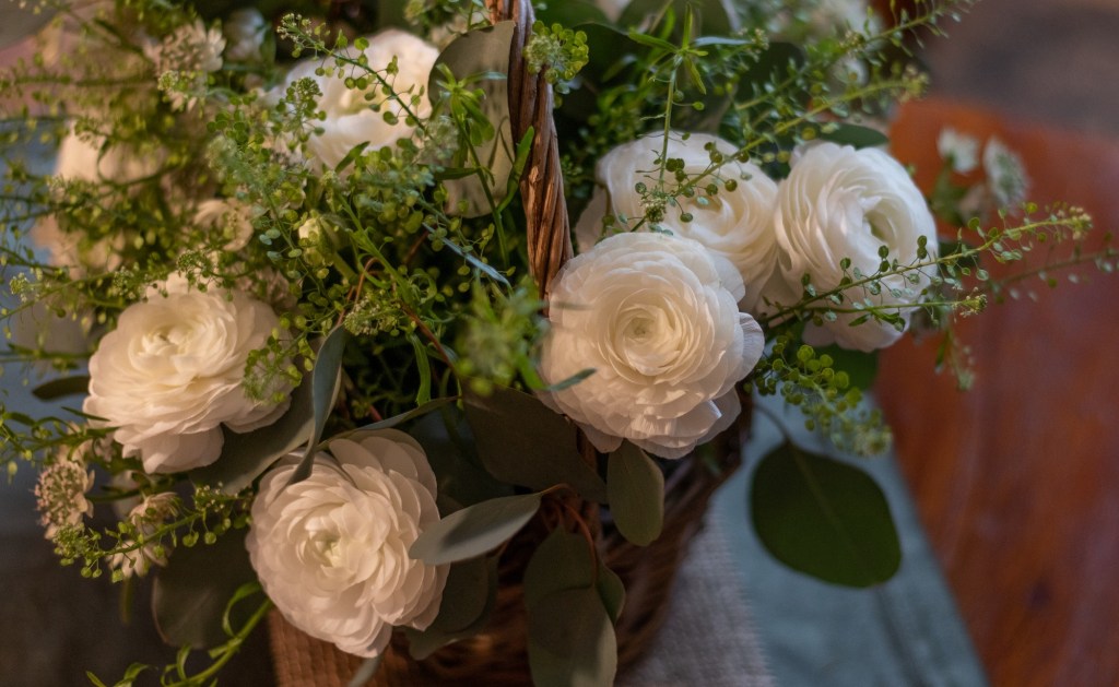 Nyt on kyllä kori + kukkaset ihan napakymppi yhdistelmä! 🎯 Vihreävoittoinen kukka-asetelma/kimppu on muutenkin ihanan raikas.