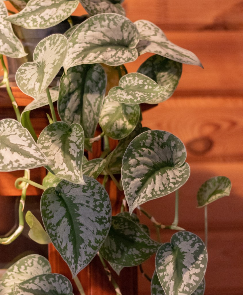 Mua ihmetyttää, miten vähän kodeissa näkyy hopeaköynnöksiä. Se on mun kokemuksen mukaan ihan yhtä helppo hoidettava kuin tosi suosittu kultaköynnös ja luulisi hopeaköynnöksen viileiden sävyjen sopivan erityisen hyvin suomalaiskoteihin. Mulla niitä on olohuonetta koristamassa kaksikin kappaletta.