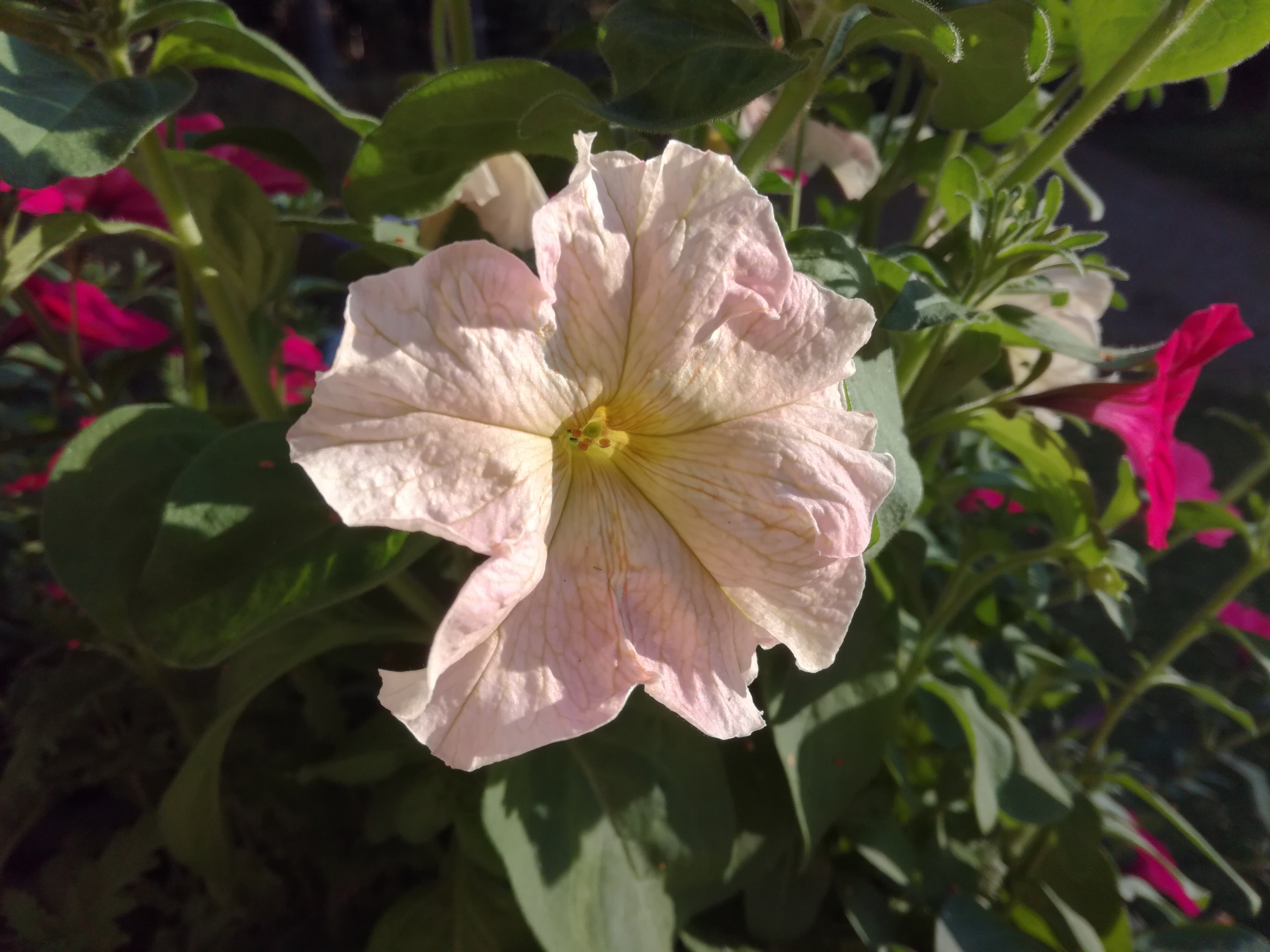 Samaan tapaan Flambe Cascaden kanssa kasvaa Prism Sunshine -petunia. Sillä on suuret kermanvaaleat kukat, missä on pehmeänkeltainen keskus. Niin herkulliset sävyt!
