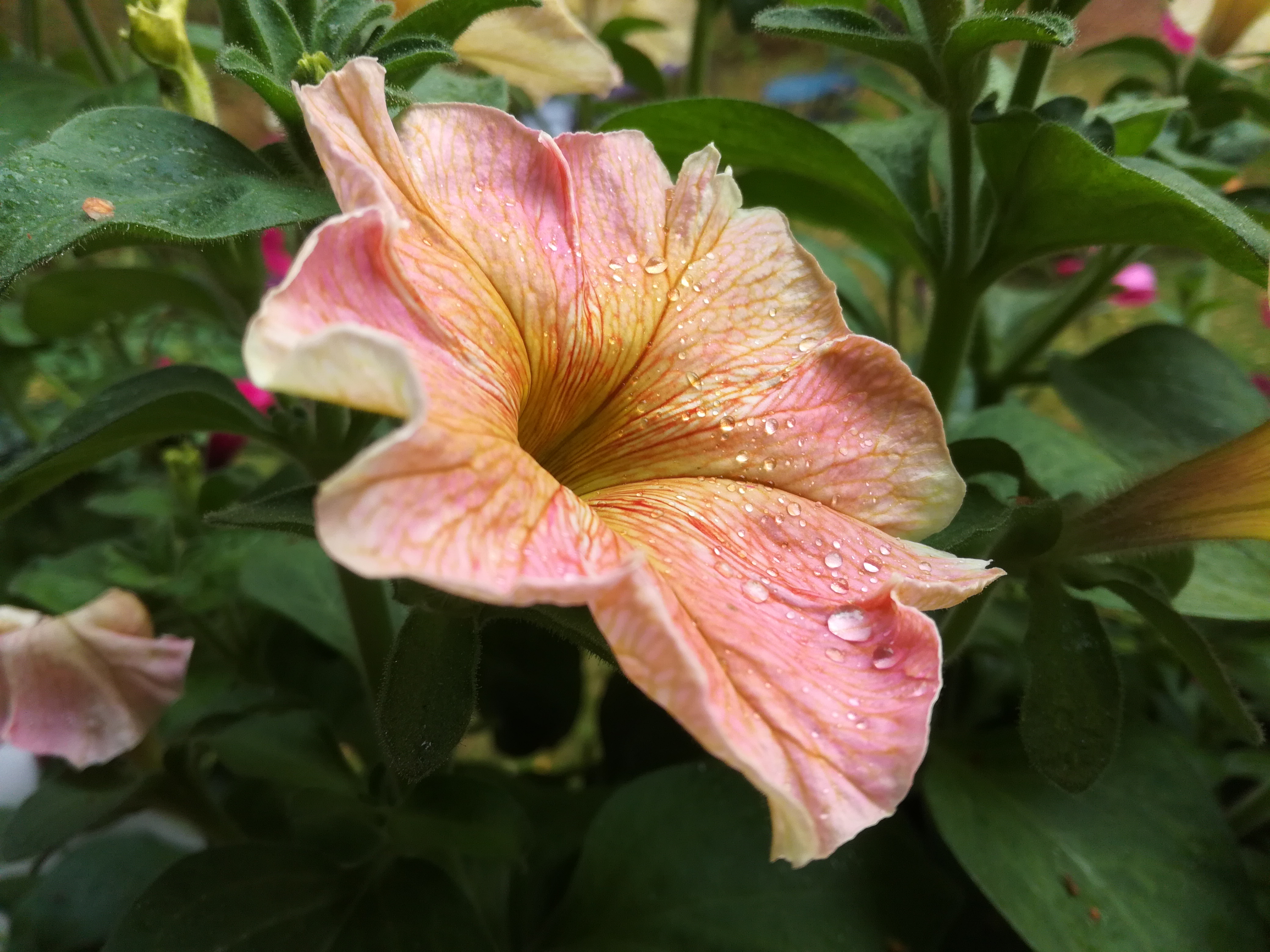 Pystykasvuisen Flambe Cascade -petunian kukkien rustiikkiset sävyt ovat aivan ihania! Sen sanottiin olevan riippapetunia, mitä ihmettelen, koska mulla ne olivat hyvinkin pystykasvuisia ja jäivät aika pieniksi. Mutta kukat olivat isoja ja näyttäviä!