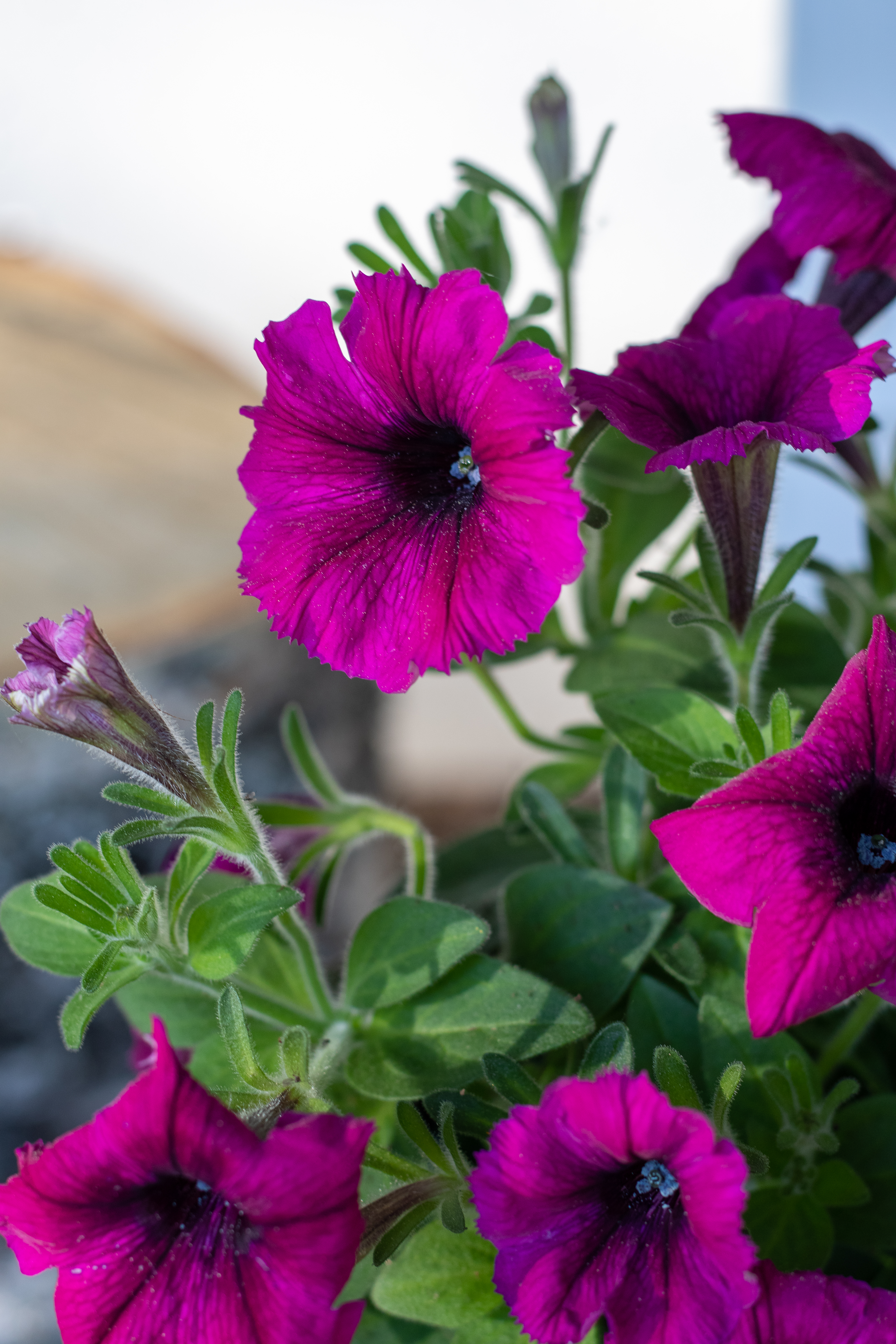 Potunia Deep purple -petuniat ovat hyvin samantapaisia kuin GO!Tunia Burgundy-petuniat. Kukkien muoto on hieman erilainen ja sävyissä on pientä eroa. Tykkäsin molemmista tosi paljon. Erottuivat kauniisti vaaleasta seinästä talon edustalla.
