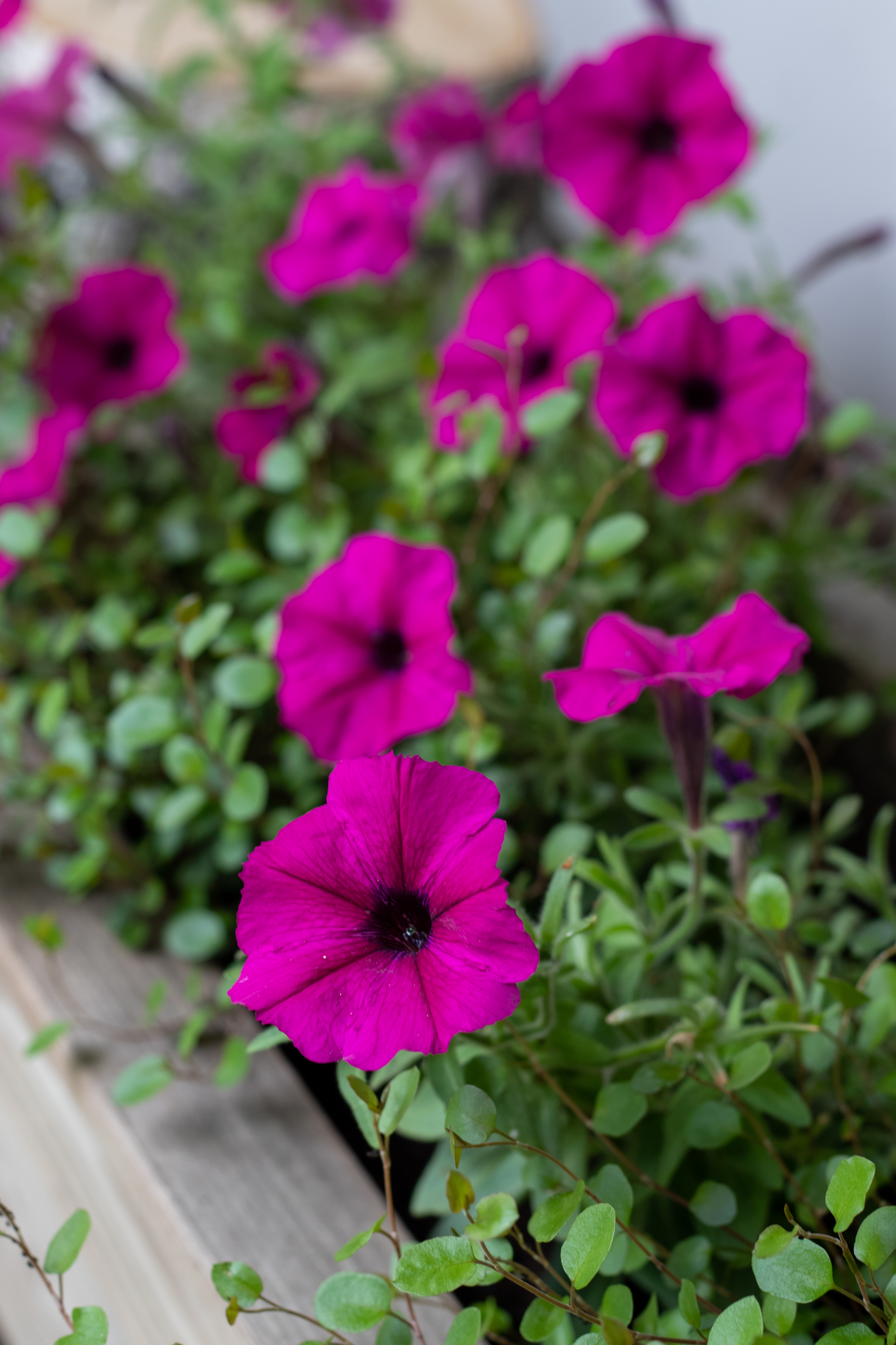 Aniliininpunaiset pikkupetuniat kukkivat hurjan ahkerasti ja päätinkin, että jos niitä on taimina tälle kesälle saatavilla, on kyllä muutama taas hankittava.