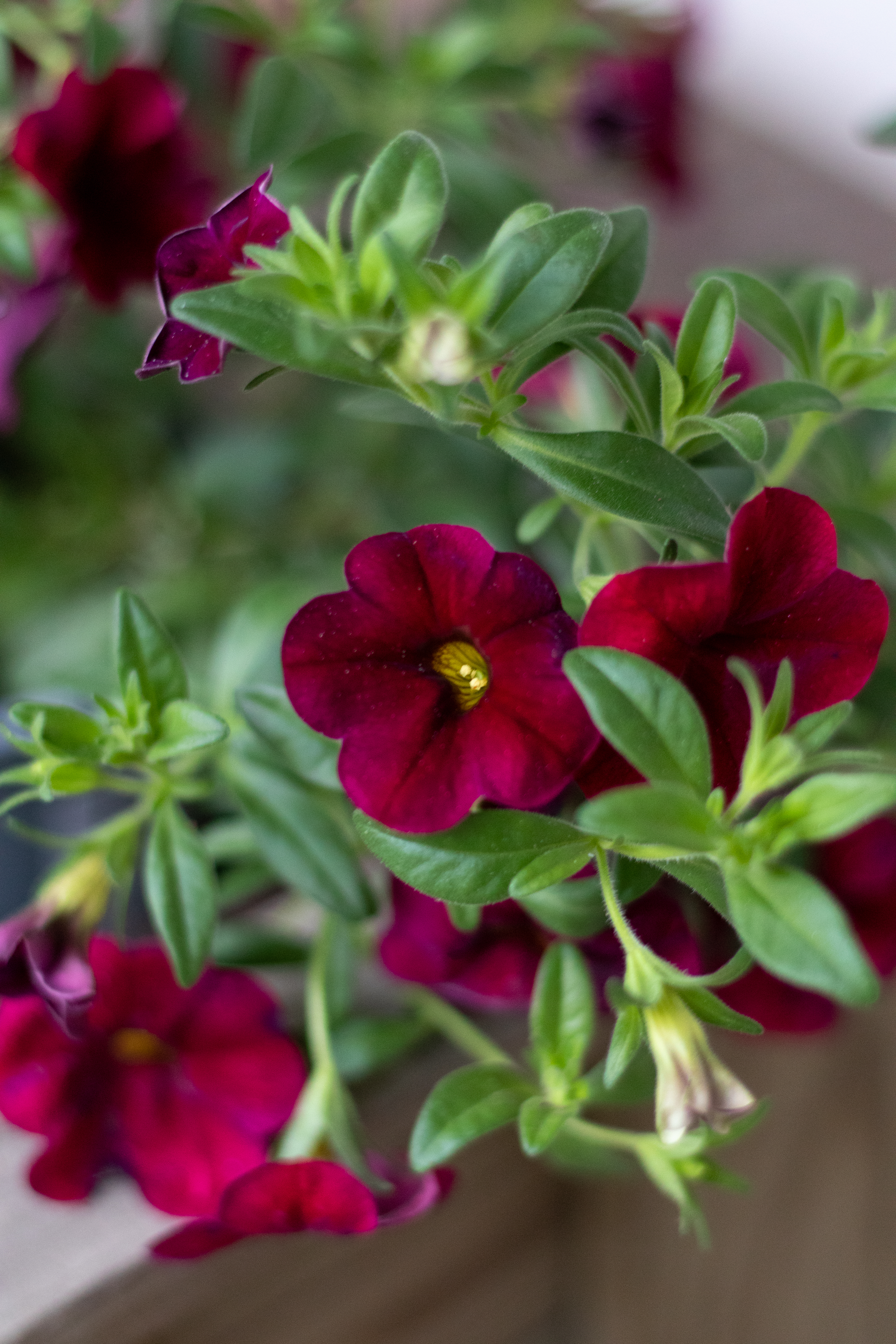 GO!Tunia Burgundy-petuniat ovat pystykasvuisia ja kasvavat maltillisemmin, joten sopivat hyvin pienempiinkin ruukkuihin. Ne ovat erityisen helppohoitoisia, kun nyppiäkään ei tarvitse. Mä olen kylläkin laiska nyppimään kaikkia petunioita (ja muita kesäkukkia), mutta runsaasti ovat mulla silti kukkineet.