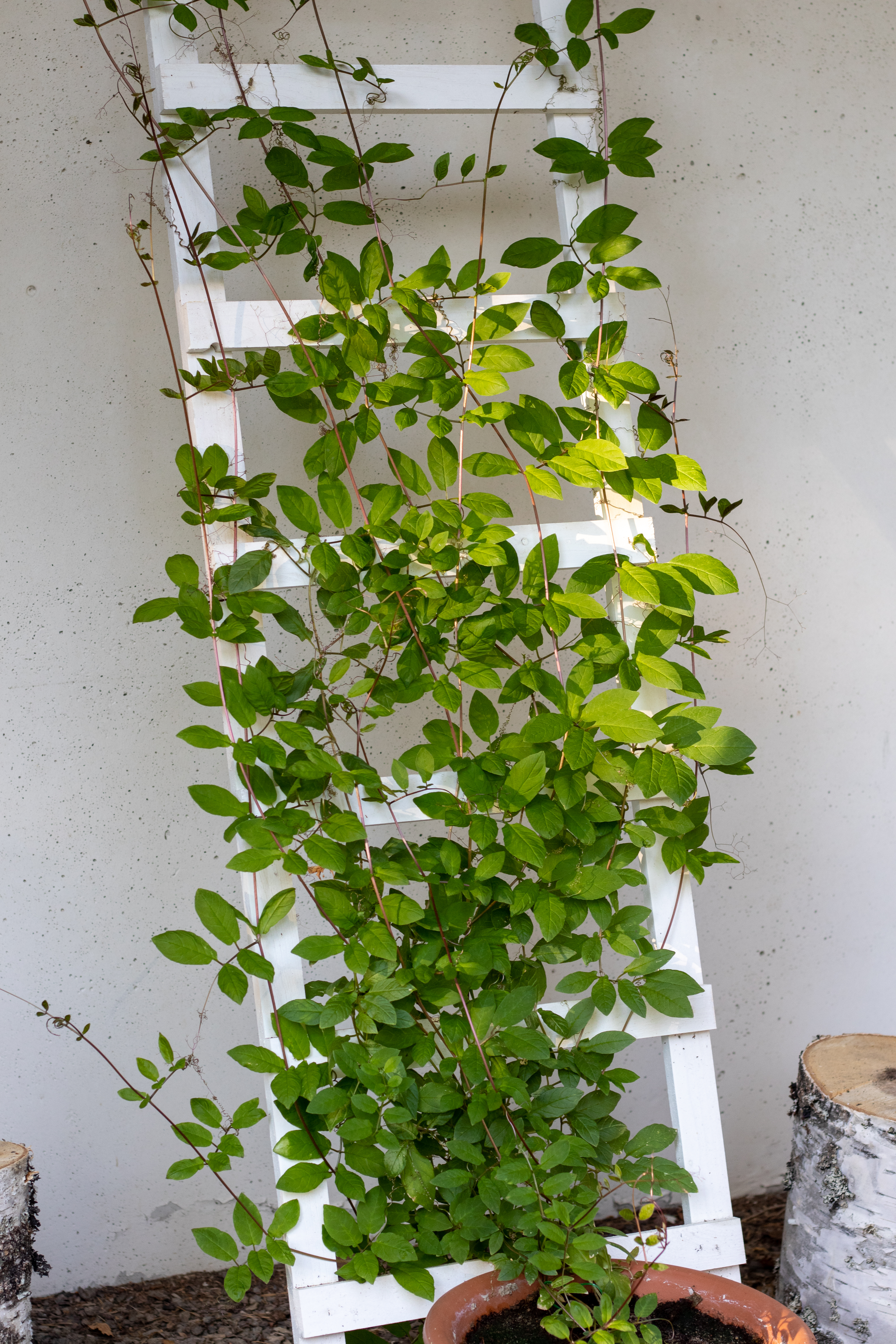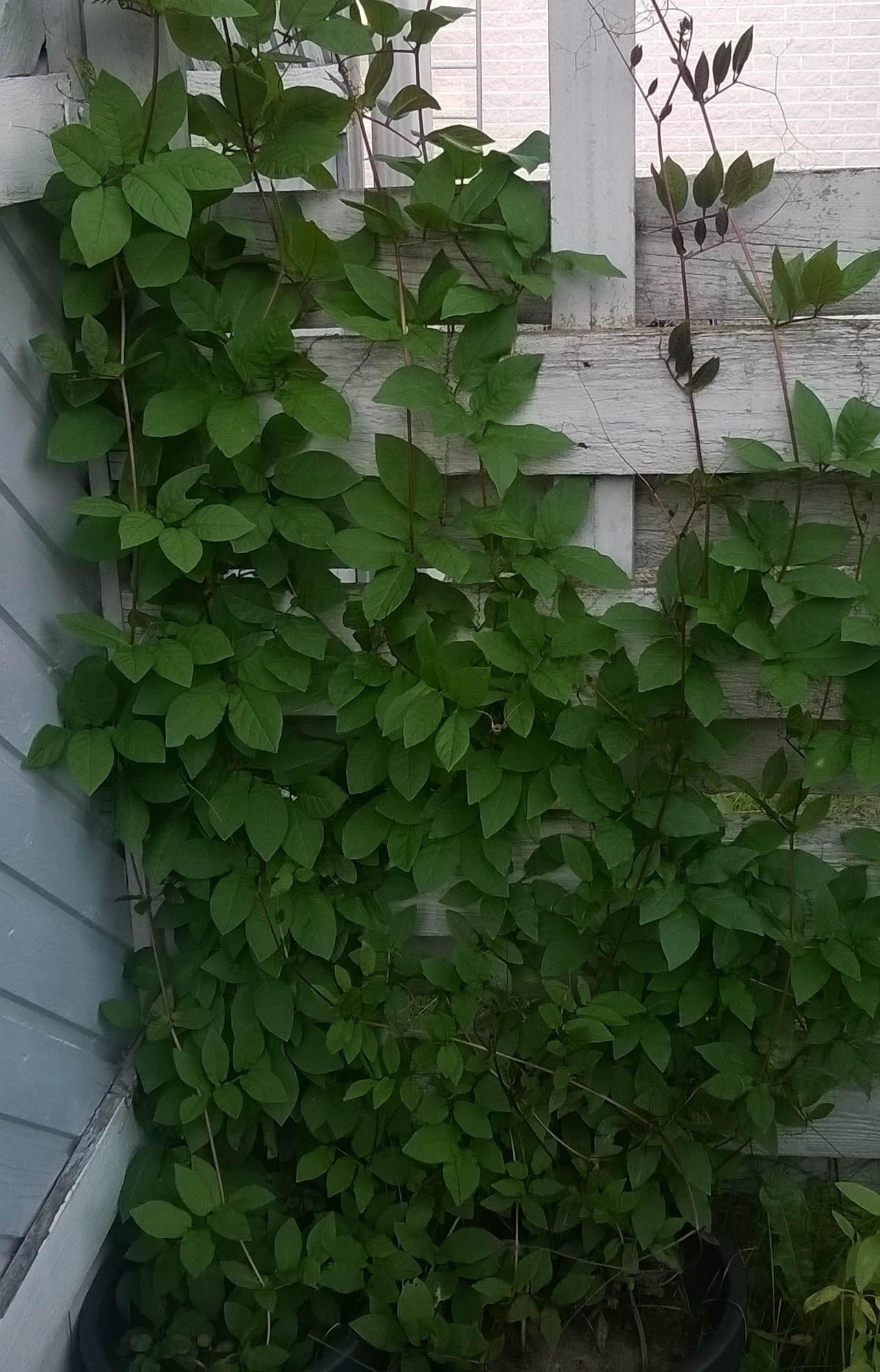 Mulla kelloköynnös kasvoi turhankin innokkaasti viime vuonna, kun isossa ruukussa oleva tuki ei korkeudeltaan riittänyt eli haluaisin tämän köynnöstuen kanssa laittaa jonkun vähän maltillisemmin ja aikaisemmin kukkivan köynnöskasvin – olisko antaa ehdotuksia? 😊