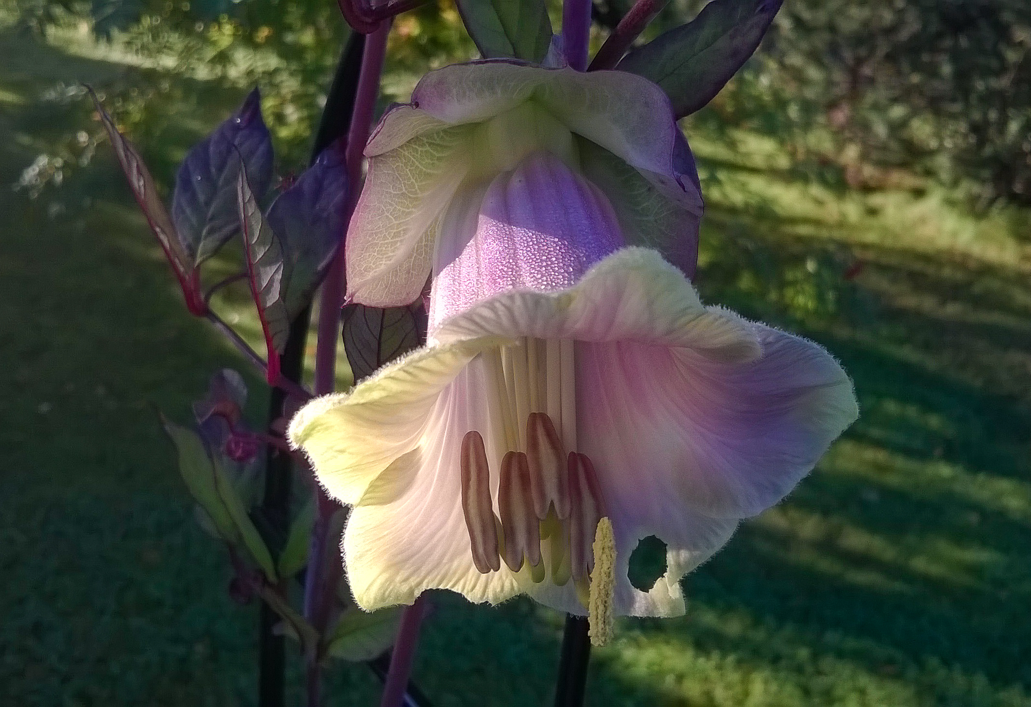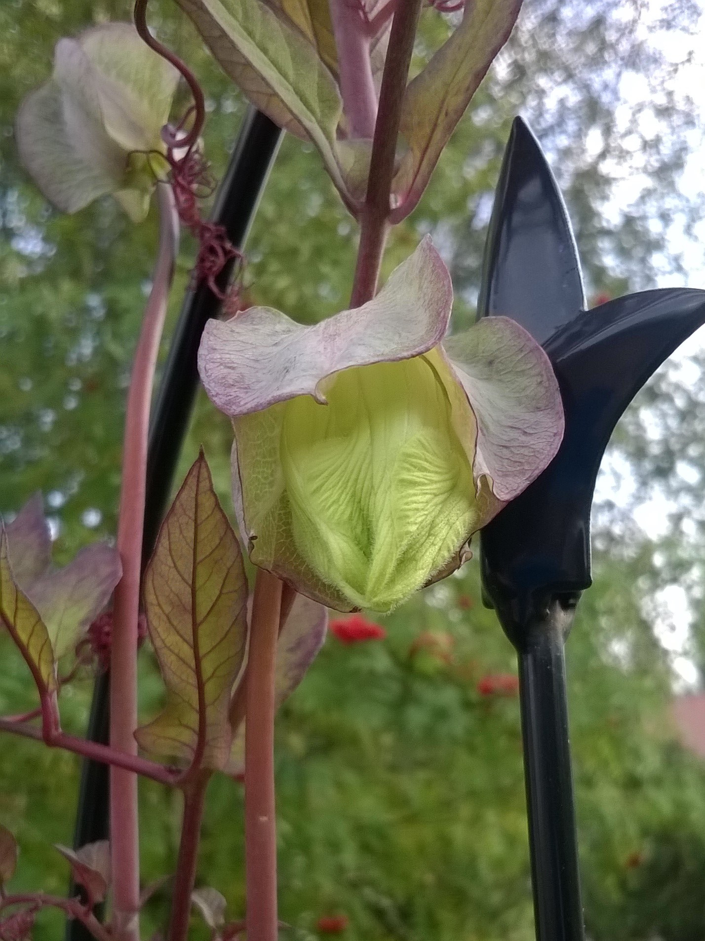 Kelloköynnöstä mä olen kasvattanut itse siemenistä sekä hankkinut myös valmiina taimina. Ne eivät ole aina ehtineet mulla kukkia, mutta se ei ole mua pahemmin haitannut. Kelloköynnökset aloittavat kukinnan vasta syyskesällä, mutta kukat ovat todellakin odottamisen arvoisia! Suuret kellot ovat joko violetteja tai valkoisia. Violetit kukat avatuvat ensin kermanvaaleina, mutta vaihtavat nopeasti väriä. Kelloköynnöksellä on myös upea tummanvioletti syysväri. Se on voimakaskasvuinen köynnös, mikä pystyy tarttumaan kärhöillään melkein mihin vain. Mä olen kasvattanut sitä näkösuojaksi aidalle ja koristeeksi tikkaille ja kehikkoihin.