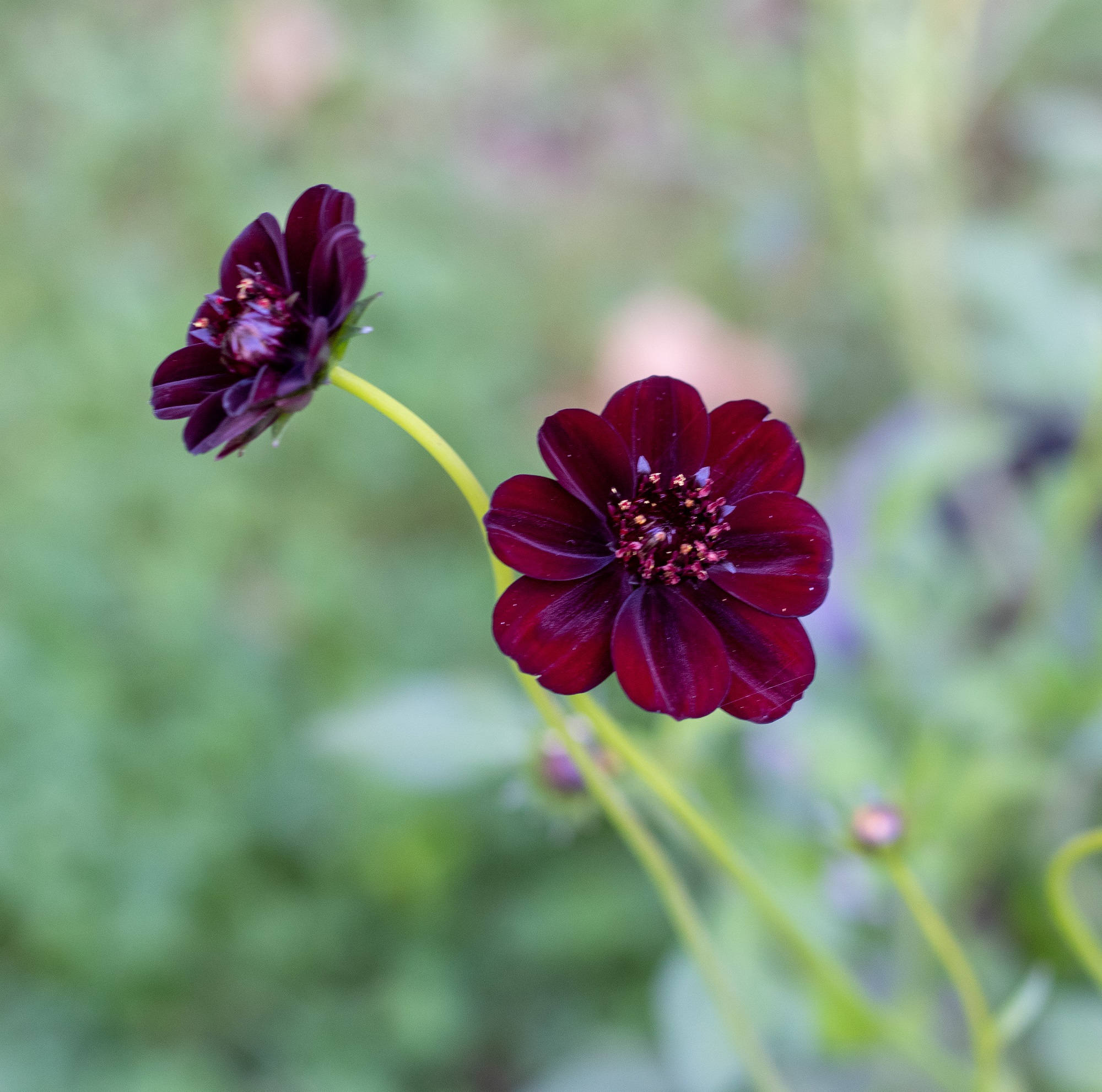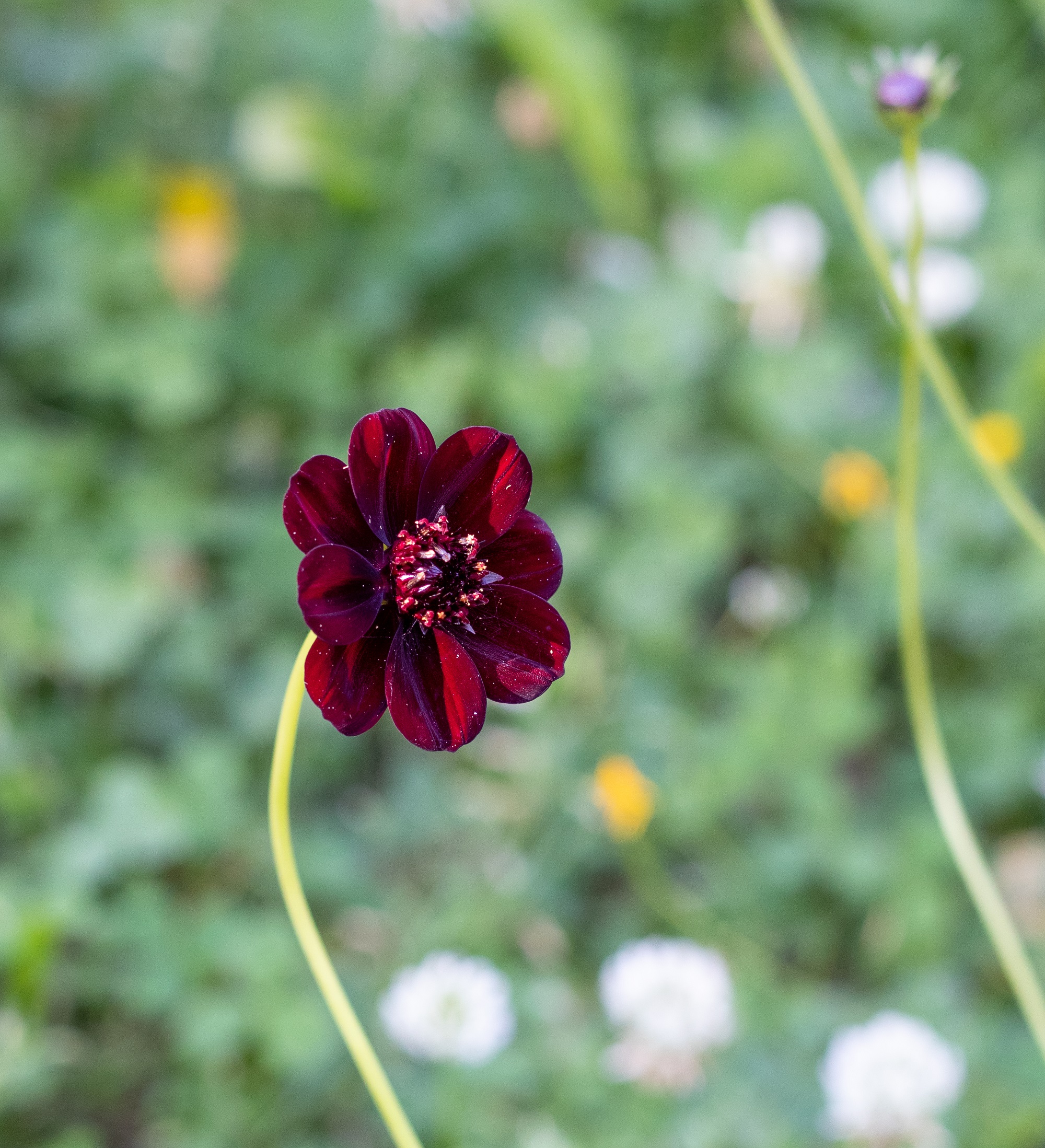 Suklaakosmos on kaunis lisä kesän kukkaistutuksiin. Sen suloiset syvän tummanpunaiset tai kastanjanruskeat kukat tuoksuvat suklaalle hieman vaniljalla höystettynä. Mä olen kasvattanut suklaakosmosta isossa ruukussa yksinään, mutta suosittelen istuttamaan sitä mieluummin muiden kukkien kaveriksi sen kasvutavan vuoksi. Suklaakosmos kasvattaa todella pitkät kukkavanat, minkä vuoksi kukkia näyttää olevan harvassa.