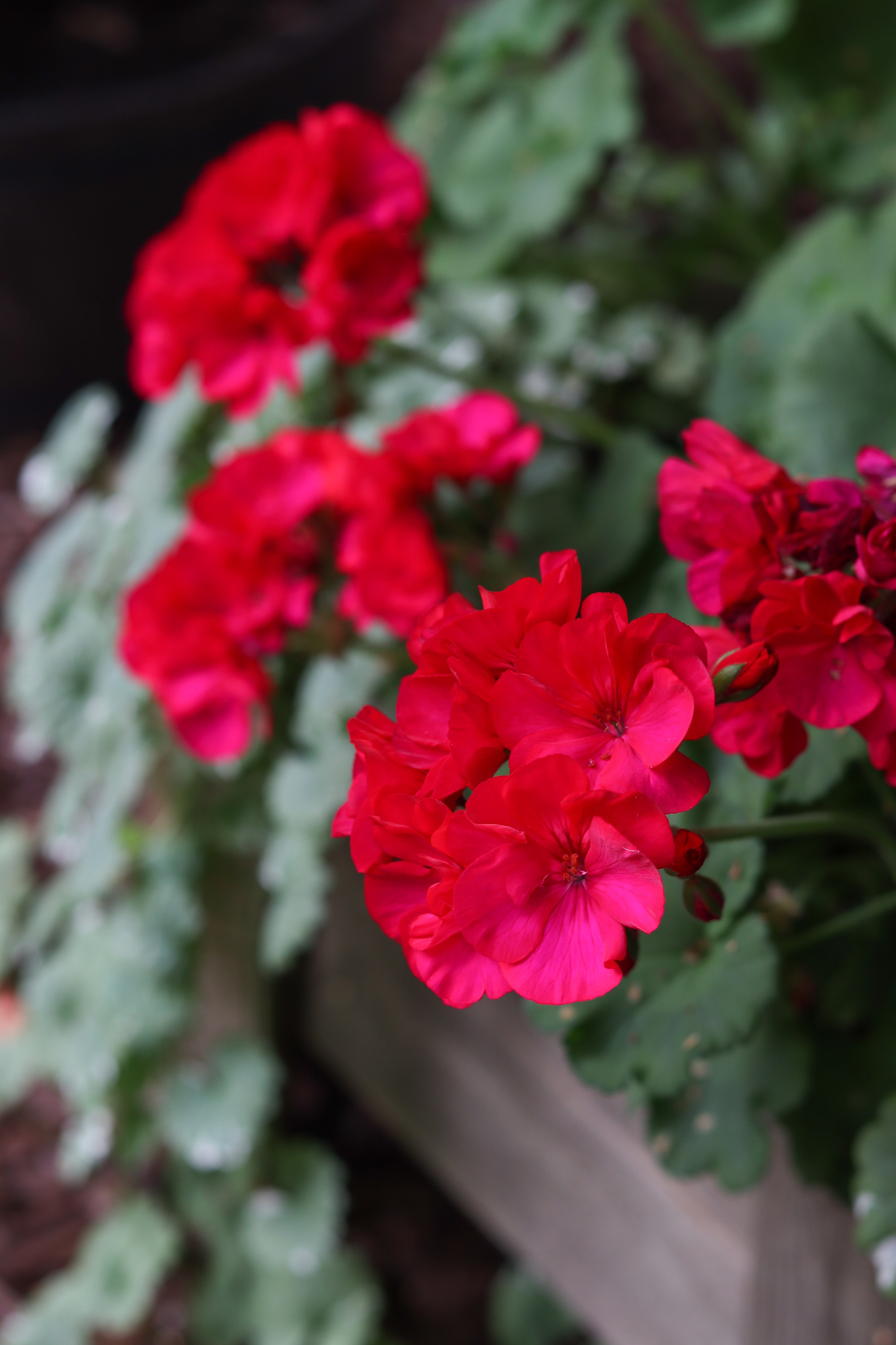 Perinteiset pelargonit kuuluvat yleensä mun kesään petunioiden tavoin. Värivalikoimaa löytyy runsaasti, myös monisävyisiä kukkia on saatavilla. Pelargonit kukkivat runsaasti aurinkoisella kasvupaikalla. Ne ovat joskus pitäneet mulla pienen tauon kukinnassa istutuksen jälkeen, mutta kukkivat sitten ihan syksyyn asti, kun taas innostuvat. Pelargonit voi myös talvettaa.